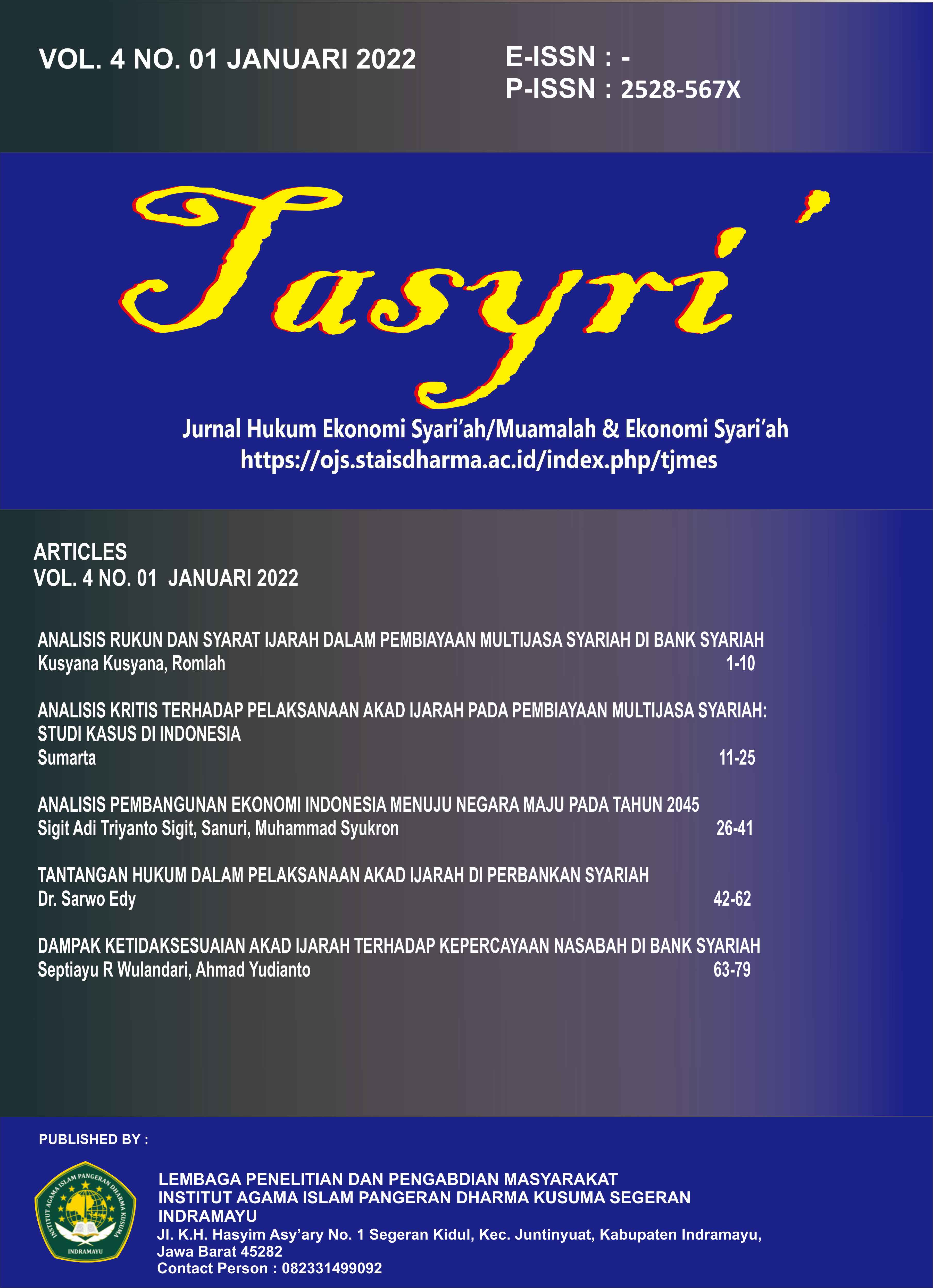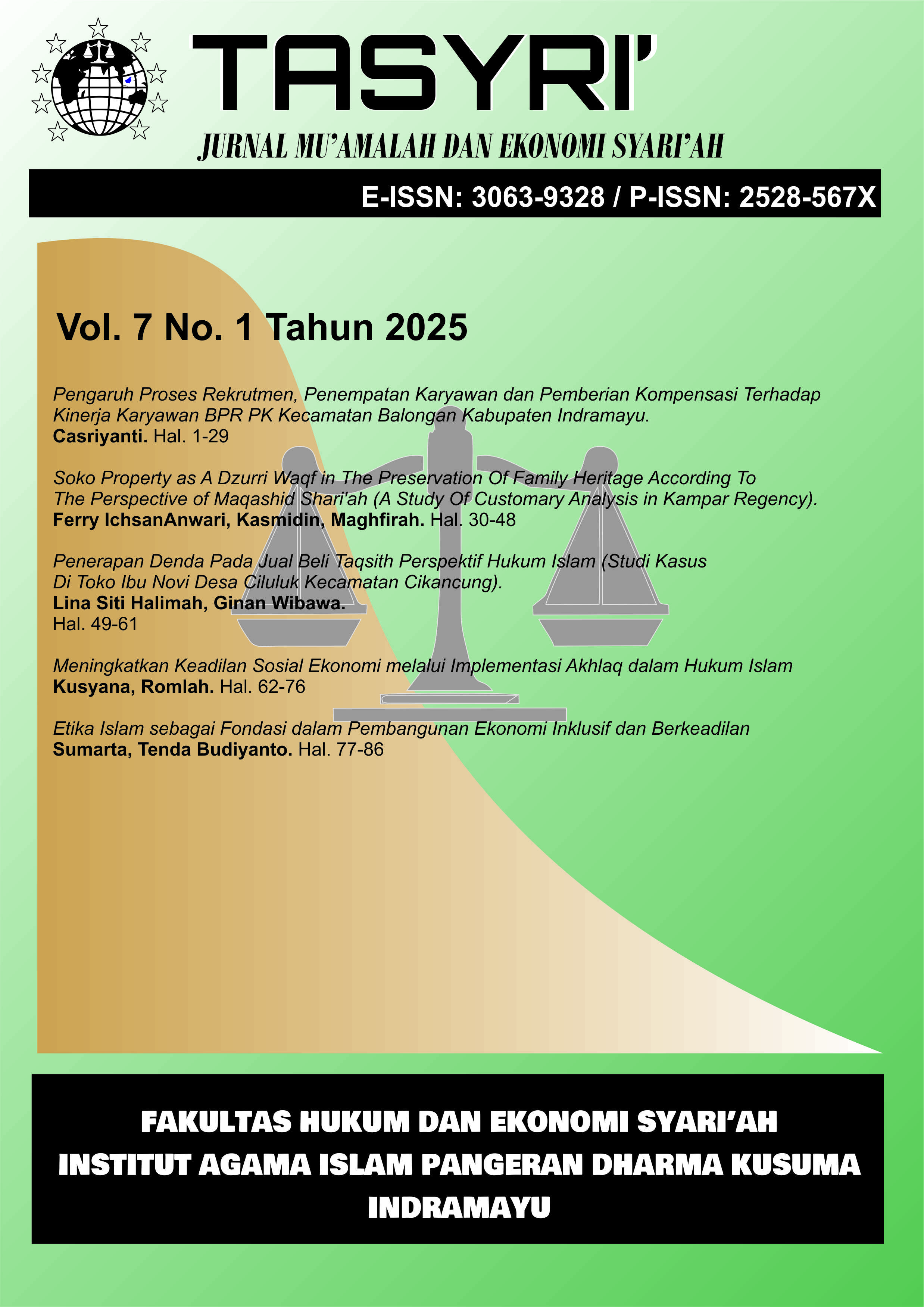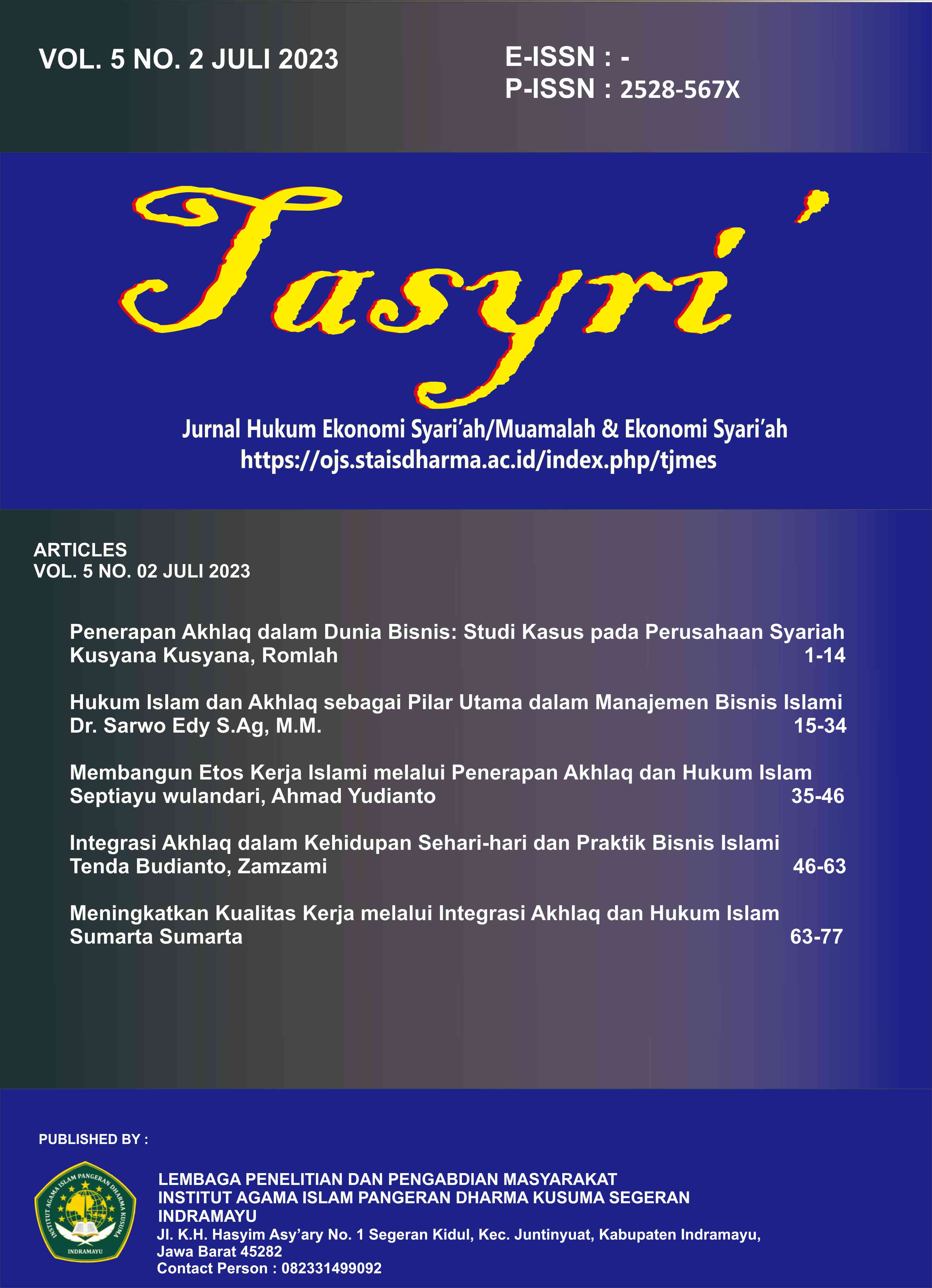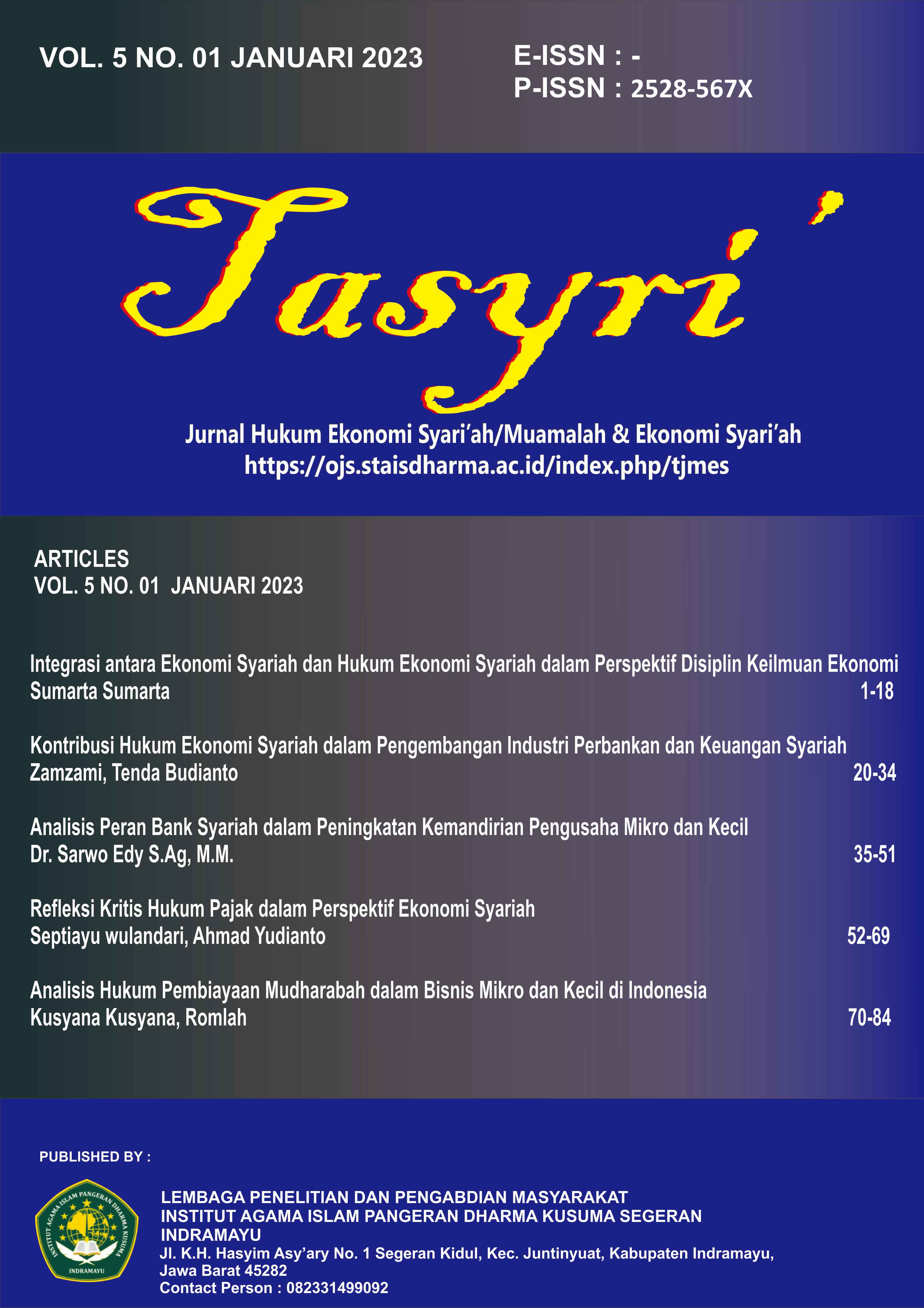 Tasyri: Jurnal Muamalah dan Ekonomi Syariah